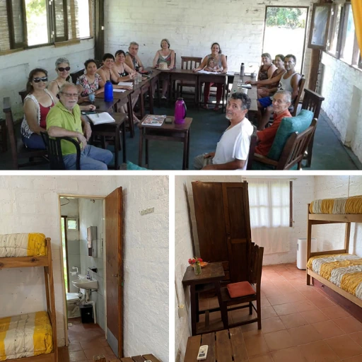 Consta de dormitorios, cocina, baños y un salón donde se realizan reuniones y retiros.