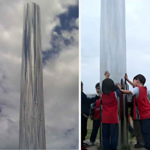Hecho de acero inoxidable, refleja la mirada hacia lo alto y la fuerza de lo humano proyectado al infinito.